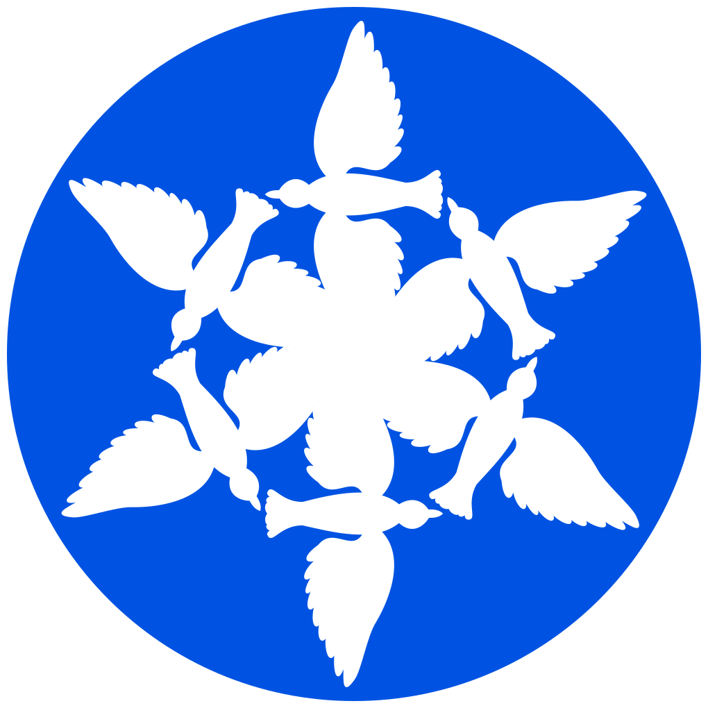 The Flower of Doves is a new emblem of peace, representing family connection and shared values. It features six white doves in a counter-clockwise circular arrangement, merging to form a single flower. Set against a blue backdrop, the design evokes the endless sky that connects us all and serves as a symbol of eternal continuity.